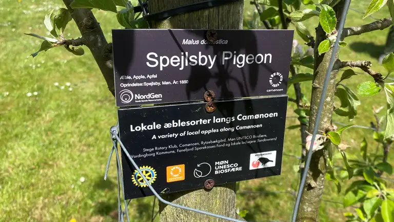 I 2019 blev der plantet 250 æbletræer fordelt på omkring 50 forskellige steder langs den mønske vandrerute Camønoen. Træerne repræsenterer gamle, historiske æblesorter fra Sydsjælland og Møn – blandt andet den sjældne Spejlsby Pigeon og det karakteristiske Borre Kærneæble.