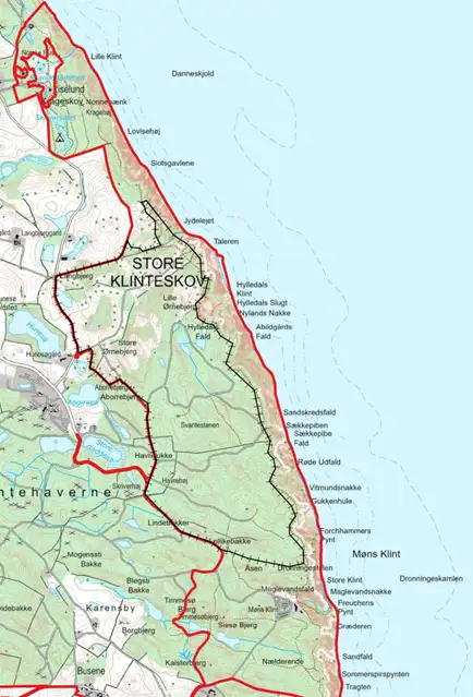 Nye indhegninger Den nuværende indhegning i Jydelejet udvides derefter sydpå, og det er planen, at man i 2025 vil kunne opleve geder og kvæg i Klinteskoven, hvor der skal fældes træer. Dyrene vil hjælpe de naturlige processer på vej og bidrage til en vildere og mere lysåben natur med flere levesteder for dyr og planter. Man vil stadig kunne færdes på stier og ruter til fods, hest og på cykel, og der kommer låger i hegnet.