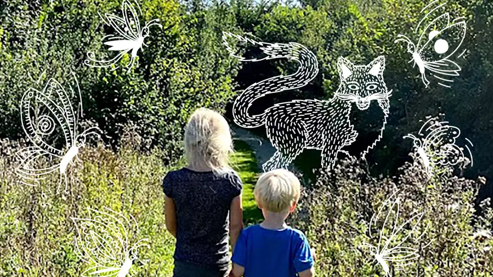 Eventyret er skrevet unikt til ruten omkring 44Møen og kombinerer fortælling med bevægelse, leg og læring om naturen i biosfæreområdet.