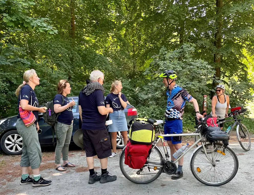 I denne uge var arbejdsgruppen derfor på studietur ud i biosfæreområdet. Formålet var at besøge nogle af de såkaldte ’hot-spot’ problemområder og opnå en fælles forståelse af problemet og nye ideer til løsningsmuligheder. Og Møn viste sig fra sin allerbedste side med sol og klar blå himmel. Arbejdsgruppen fik med egne øjne både oplevet det, vi ønsker at passe på som fx Kantet Kohvede, og det vi ønsker at forbedre med uhensigtsmæssig adfærd i naturen. Mange gode ideer blev vendt og kommer med i det videre arbejde!