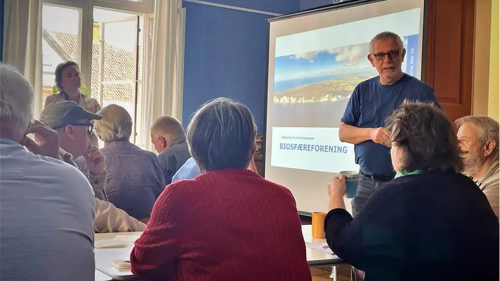 Der blev lyttet, diskuteret og drømt stort, da Stege Gamle Rådhus den 21. maj dannede rammen om et velbesøgt informationsmøde om oprettelsen af en ny, lokal biosfæreforening for Møn. Bag mødet stod arbejdsgruppen Sporløs Færd og Møn UNESCO Biosfæresekretariatet, som sammen bød velkommen til 29 engagerede deltagere – heriblandt både nye og erfarne biosfæreambassadører og borgere, der er nysgerrige på, hvordan man kan bidrage til bæredygtig udvikling lokalt.