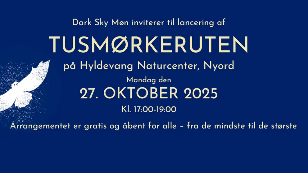 Dark Sky Møn inviterer alle til indvielse af Tusmørkeruten på Nyord mandag den 27. oktober 2025. Ruten er udlagt i Dark Sky Park-området på Nyord og er den første af tre tusmørkeruter i Dark Sky Møn-området.